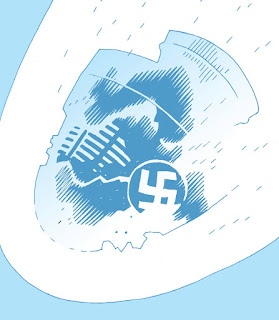 De volta ao formato de tramas mais longas, Mignola vai full Kirby mode aqui e desde a epígrafe, onde agradece á personagens como Doc Savage, já deixa claro que esse é um conto que vai abraçar as influências vindas dos quadrinhos de super heróis e da literatura pulp. A trama começa com o grupo recebendo o briefing de mais uma missão bizarra: algo está vindo do espaço em rota de colisão com a terra e as fotos demonstram ser a) uma capsula espacial e b) tem um logo nazi gigante do lado. E o negócio mudou sua rota algumas vezes, so, é de se esperar que tenha algo vivo dentro, pilotando a bagaça.